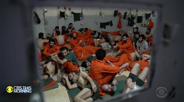Prisoners inside the ISIS-filled jail in Syria. (CBS News)