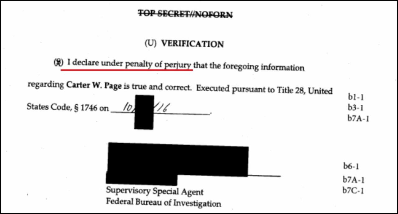 While it’s laudable that Judge Collyer has ordered the government to double-check their submissions in the prior FISA applications that involved Clinesmith, what about the previous FISA applications verified by the FBI agents who lied – under penalty of perjury, we might add – in the Carter Page applications and renewals?
