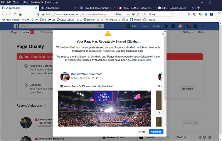 Now Facebook Is Threatening to Delete Accounts that Publish Trump Campaign Rallies Censorship US-News Editor November 9, 2019 "> by Jim Hoft IT BEGINS: Now Facebook Is Threatening to Delete Accounts that Publish Trump Campaign Rallies — Saying It’s “Clickbait” Democrats are using an anonymous anti-Trump CIA operative in their latest attempt to impeach US President Donald Trump.It has widely been reported in the past week that Eric Ciaramella is the name of the anti-Trump CIA whistleblower. https://m8h8s5r8.ssl.hwcdn.net/5d30629ed0a9d1001cf8dd73.mp4 Via John Colaw and Conservative Newsroom:Reporting on Trump rallies is now considered “clickbait!” We cannot allow these far left institutions to eliminate free press and freedom of speech in America. https://www.thegatewaypundit.com/2019/11/it-begins-now-facebook-is-threatening-to-delete-accounts-that-publish-trump-campaign-rallies-saying-its-clickbait/ ">